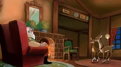 Blitzen is first seen at his home with Mitzi and their newborn son, whom they name Rudolph. Blitzen encourages Rudolph to take his first steps and come over to him. However when doing so, Rudolph trips and falls into a haybale. Blitzen and Mitzi rush over to see if he's okay and witness their son's nose light up for the first time.