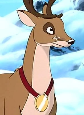 Blitzen has light brown and cream fur, brown eyes (which he passed down to Rudolph) and has two lightning bolt-shaped markings on his muzzle. Like all Flyers he wears a Medal of Valor.